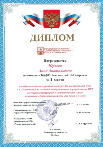 г. о. Семеновский по созданию интерактивных игр средствами ИКТ