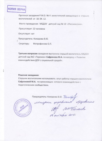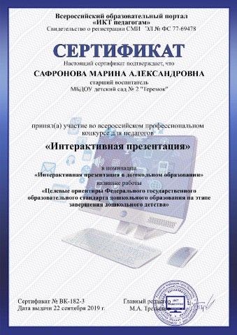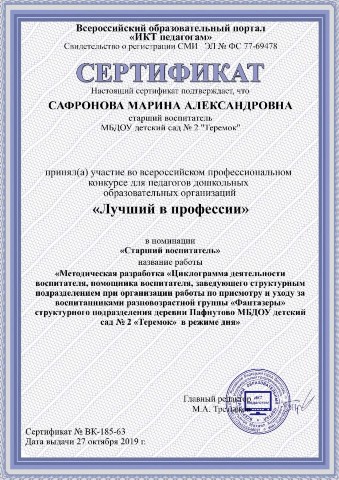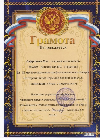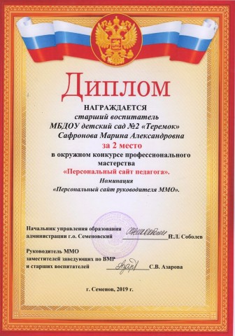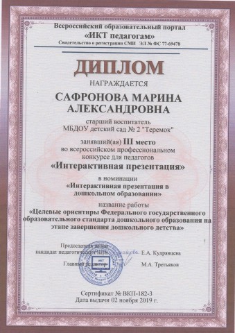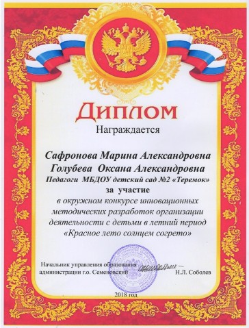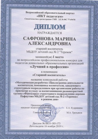 старшего воспитателя МБДОУ детского сада № 2 "Теремок"